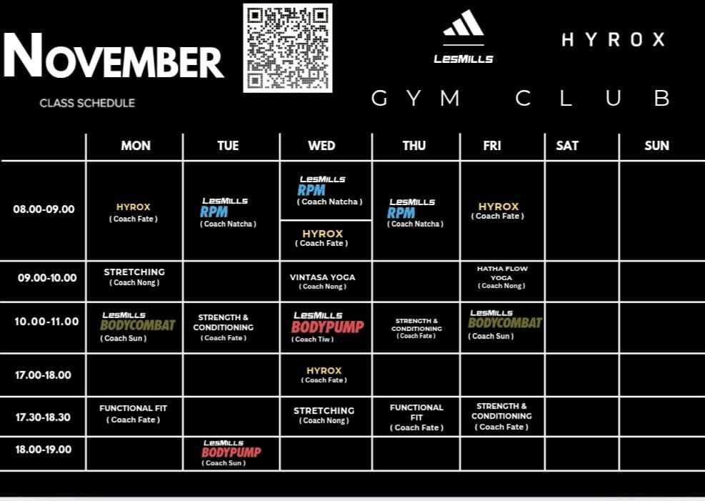 Note that our Hyrox class times do vary depending on whether it’s low or high season so if you’re making a special trip, call us on +66 82 618 8894 or message us on Whatsapp (link https://wa.me/+66826188894) to confirm class times.